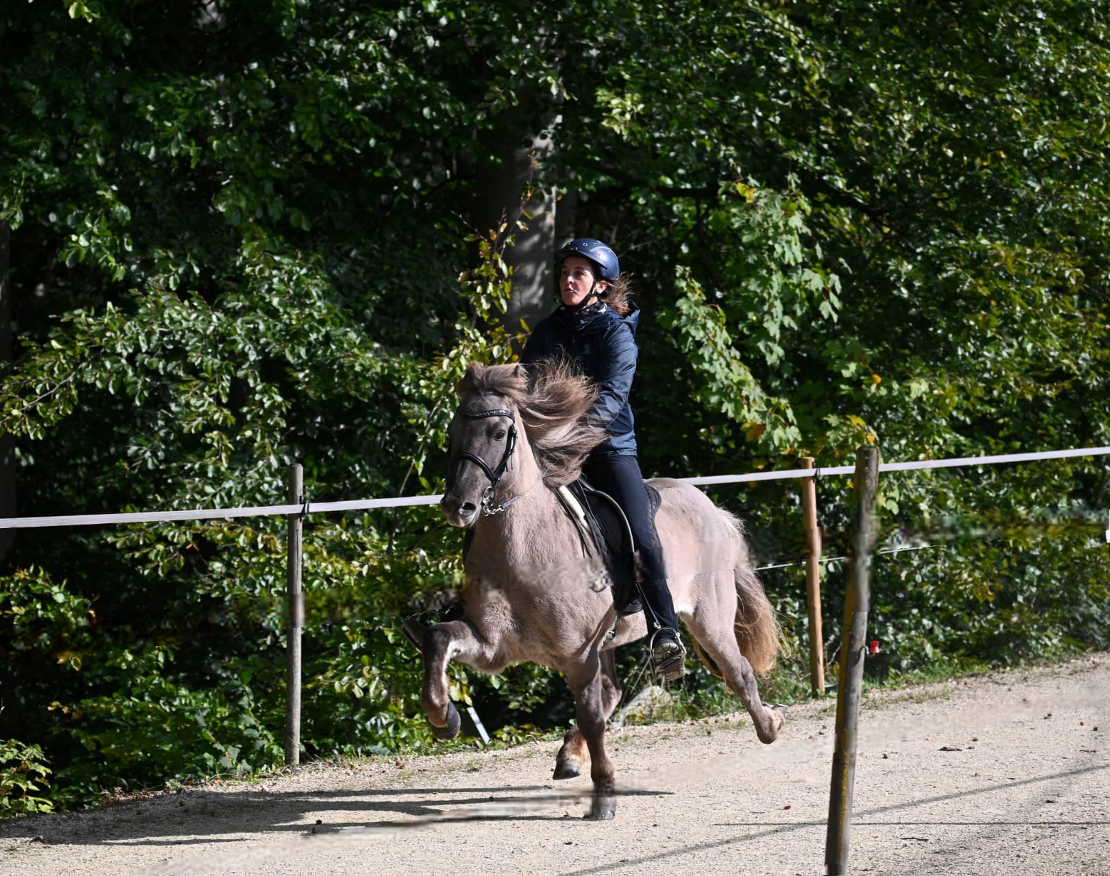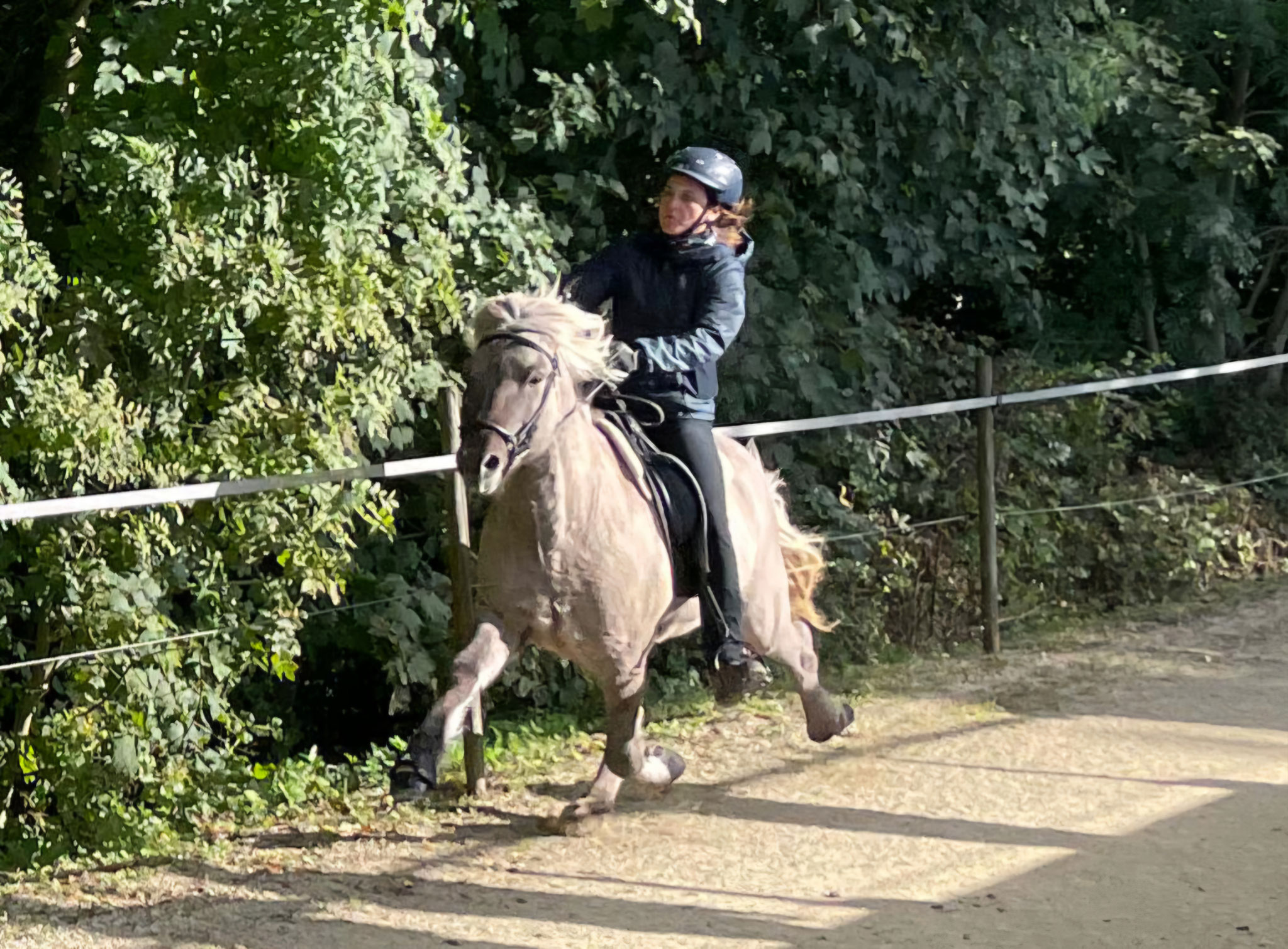 Sijyn war außerdem eines unserer Schulpferde von der ersten Stunde an. Sie hat unzähligen Schülern das Reiten beigebracht und war dabei manchmal auch etwas flotter unterwegs! Unvergesslich waren auch immer ihre Besuche beim gemeinsamen Frühstück im Rahmen der Ferienreitkurse: allzu gern hat sie sich nämlich ihre geliebte Portion "Nutella" abgeholt.